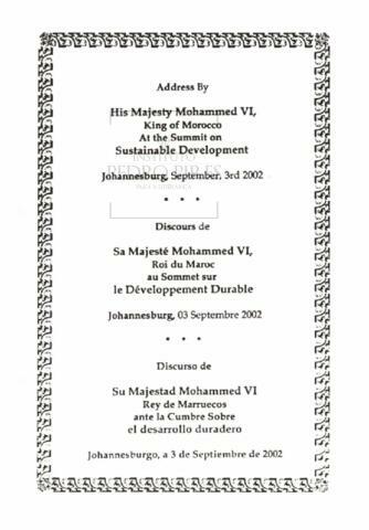Address by his Majesty Mohammed VI, King of Morocco at the Summit on Sustainable Development